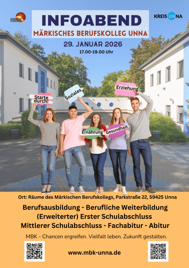 Am Donnerstag, den 29. Januar 2026, findet am Märkischen Berufskolleg Unna unser Infoabend für das kommende...