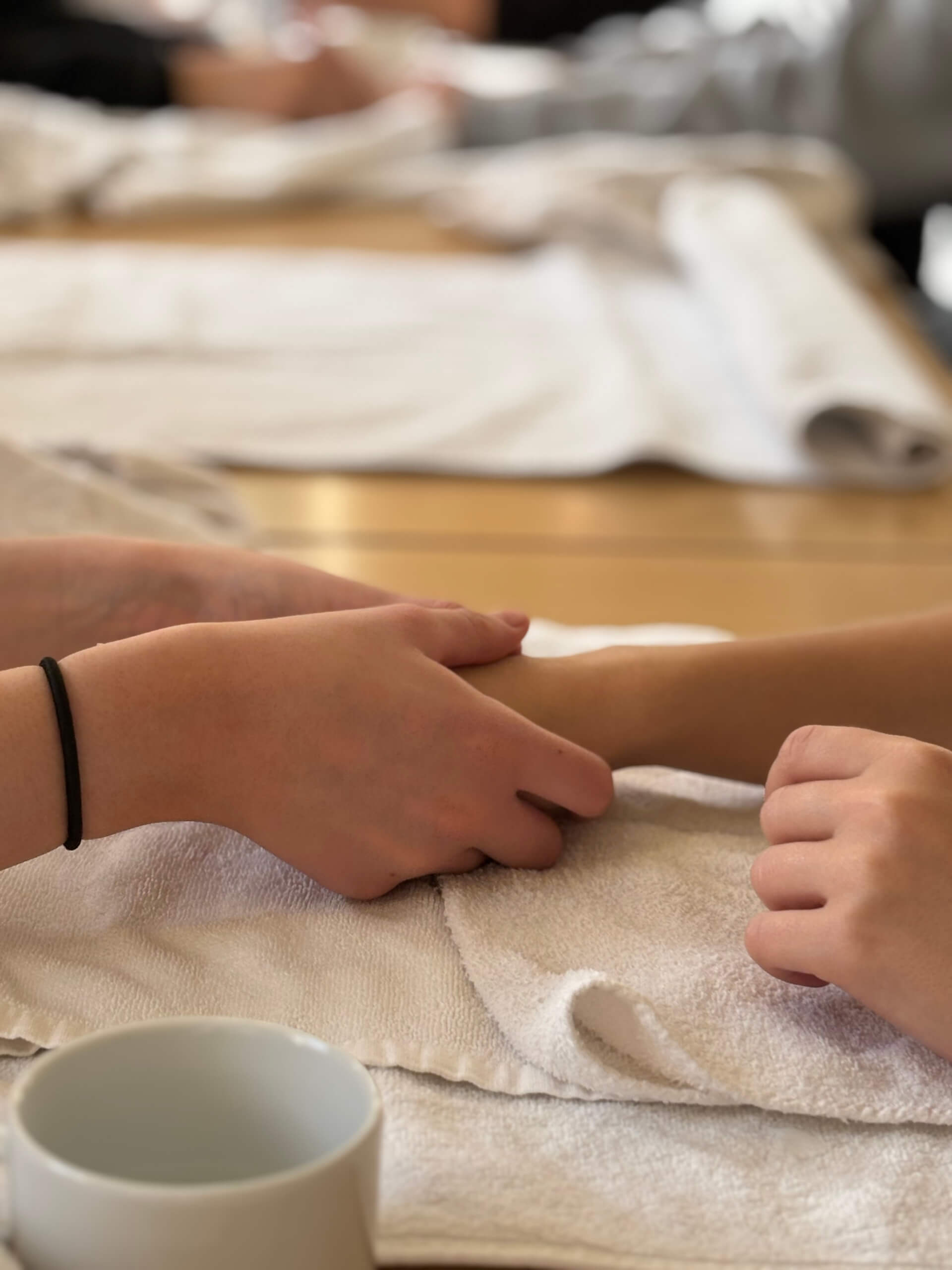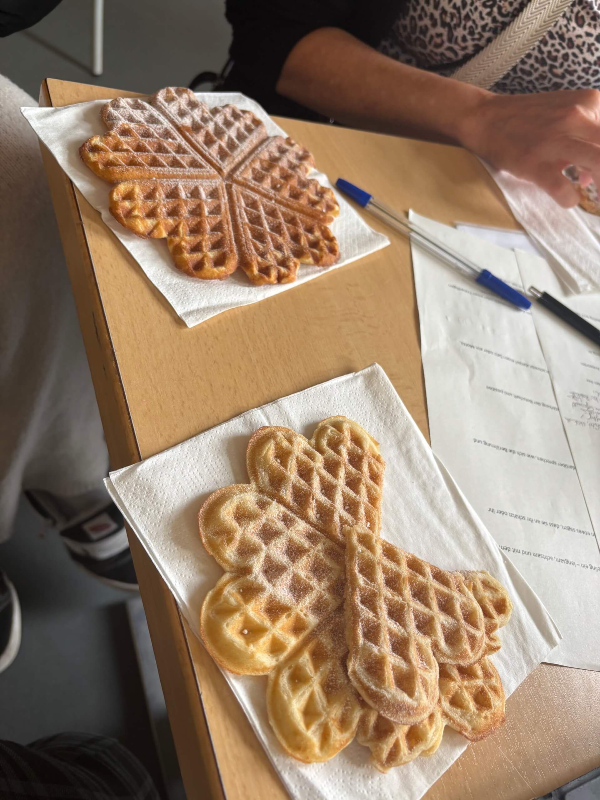 Auch für das leibliche Wohl wurde von den Schülern der Klasse gesorgt. Diese erstellten mit den Kollegen Herrn Ekel und HerrnPüttmann frisch gebackene Waffeln und Tee, die nach Fertigstellung die Gesprächsrunden begleiteten. Ein besonderes Highlight stellte das natürliche Handpeeling mit anschließender Handmassage dar, das bei leiser Spa-Musik nicht nur für Entspannung, sondern auch für ein Gefühl von Achtsamkeit und Wertschätzung sorgte.