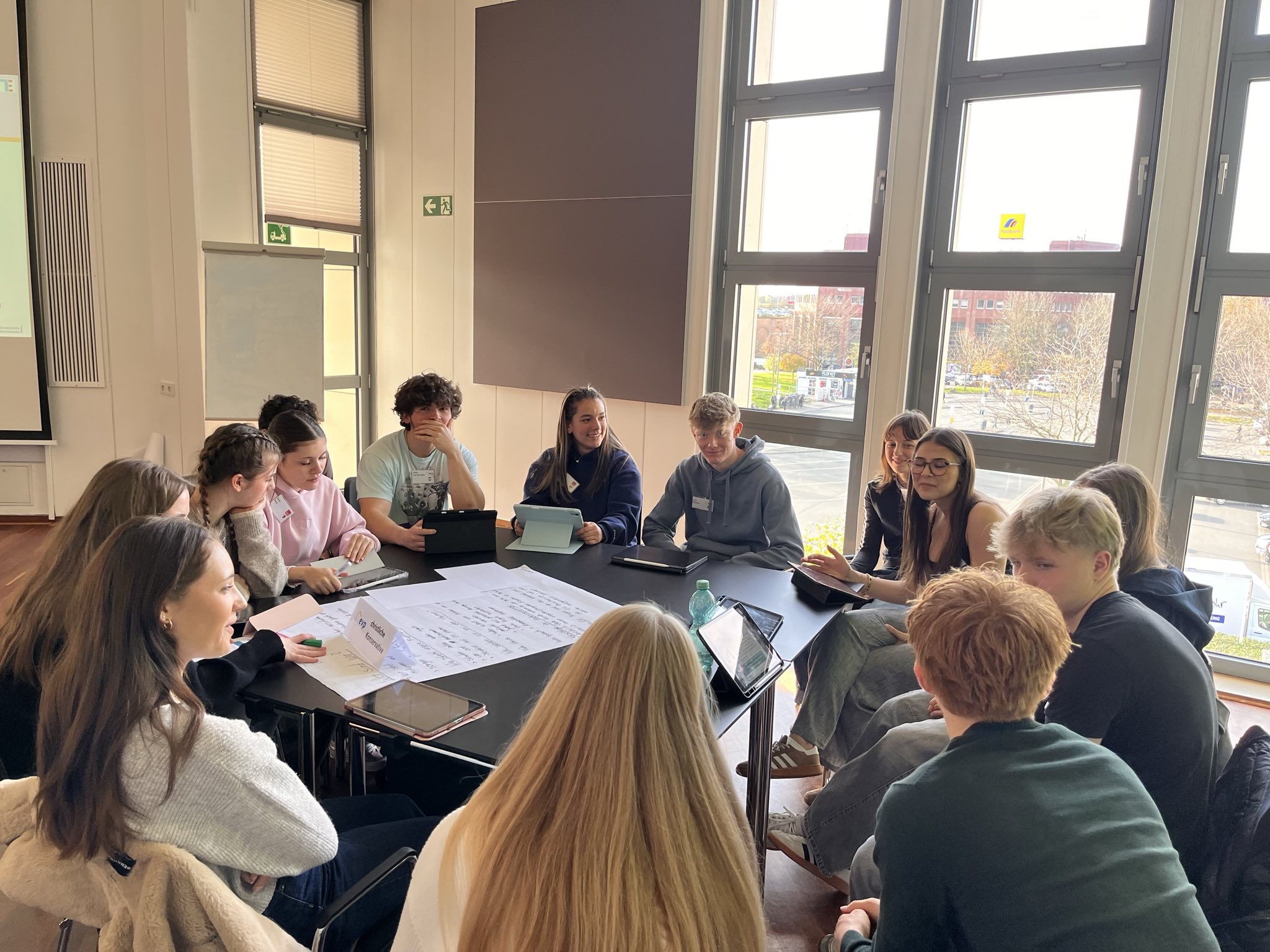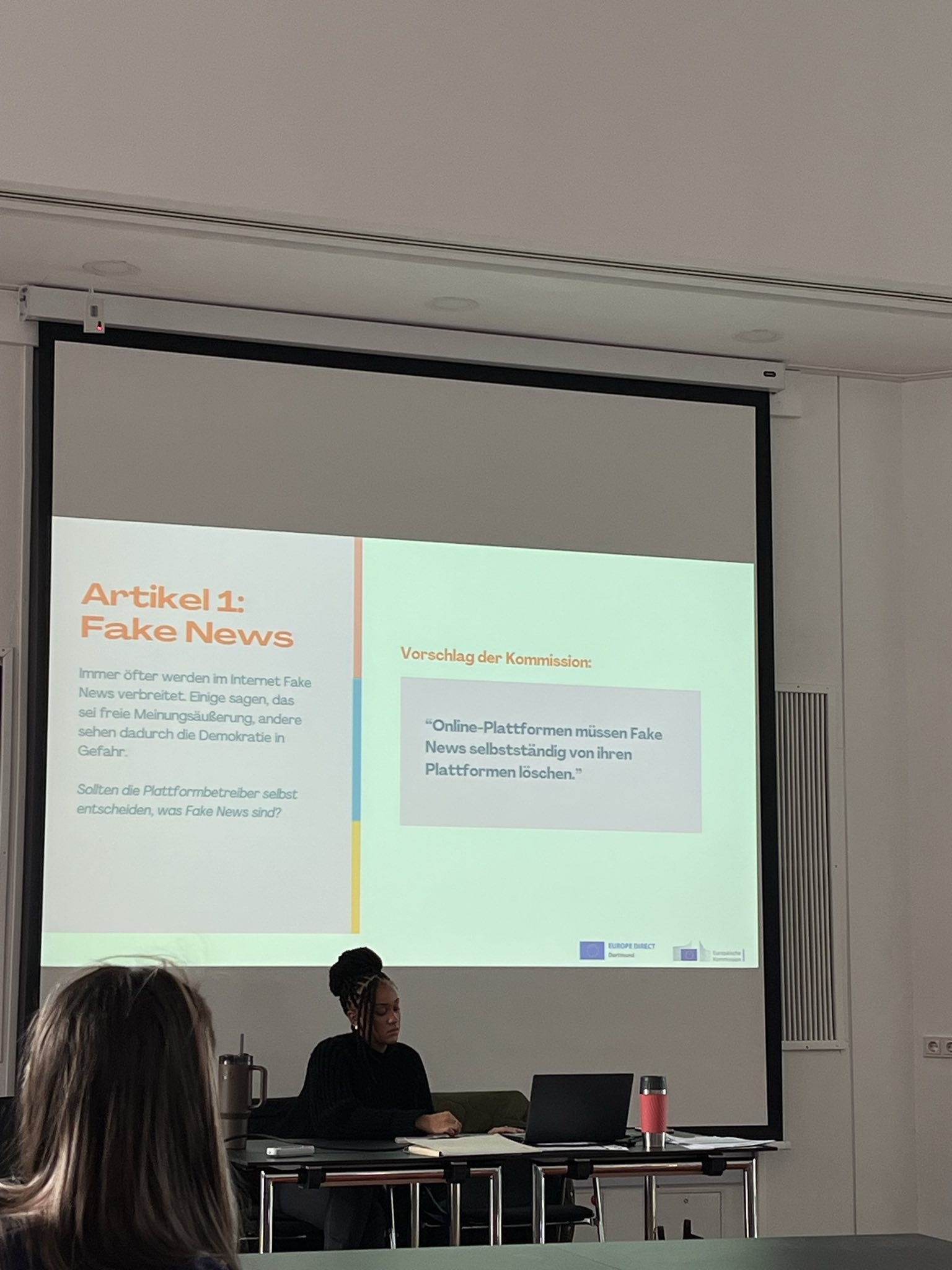 Im Rahmen des GlG-Unterrichts haben Frau Orgelmacher und Frau Dasenbrock mit ihren Klassen AHRF 12 und AHRF 13 die Auslandsgesellschaft in Dortmund besucht und dort an einem Planspiel zum Thema „Fakt oder Fake – Umgang der EU mit Desinformation“ teilgenommen. Folgende Themen standen im Mittelpunkt: Gesetzgebung in der EU; Relevanz von „Fake News“ und „Hate Speech“ in der Digitalpolitik sowie einer interaktive Positionierung und Koalitionsbildung der Fraktionen im EU-Parlament.